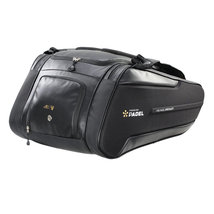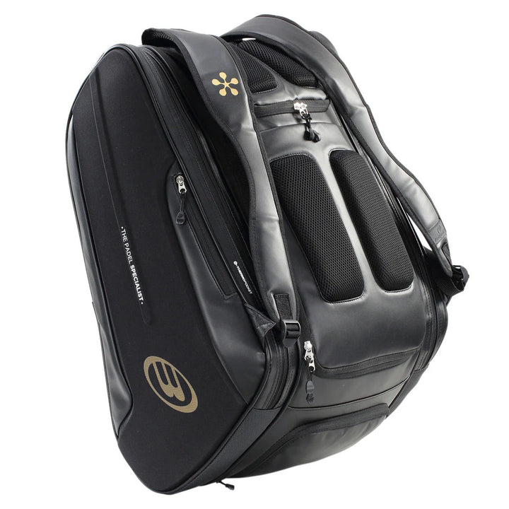 Pensado para jugadores exigentes, este modelo destaca por su estructura resistente y funcional. Cuenta con un compartimento principal amplio, dos compartimentos thermo con capacidad para hasta cuatro palas, además de un espacio separado y ventilado para guardar ropa y calzado. Su diseño ergonómico con carcasa semirrígida en los laterales brinda una protección extra a tus palas, asegurando que estén siempre en óptimas condiciones.