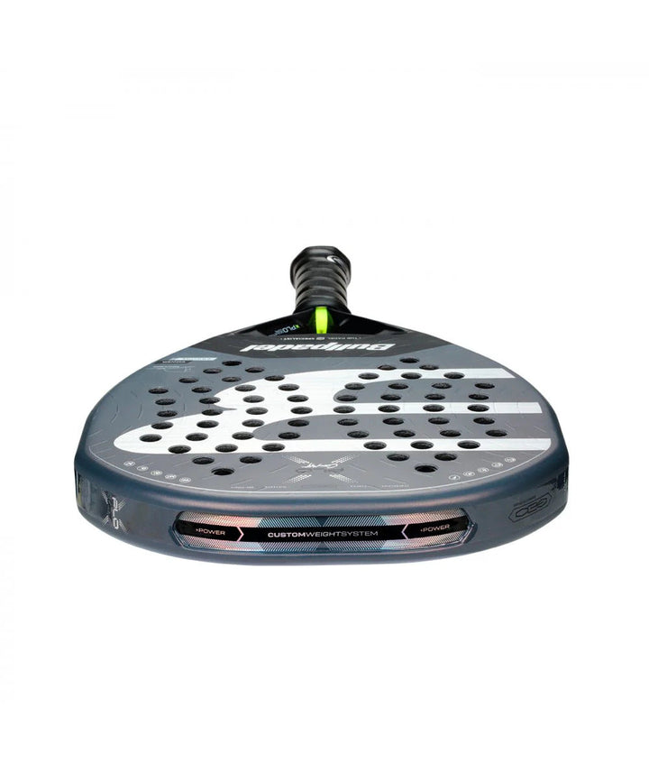 La Bullpadel XPLO Comfort redefine la potencia en las jugadas de ataque gracias a su marco geométrico y su estructura en carbono de alta resistencia. Diseñada con un balance alto, el peso se desplaza hacia la parte superior, generando un ángulo de lanzamiento más amplio y un mayor efecto palanca en cada golpe.